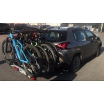 Platforma posiada pełne zabezpieczenie na kuli haka, zabezpiecza również każdy rower osobno gałką.
