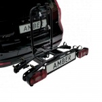 - PROUSER Amber II to łatwy w montażu bagażnik rowerowy do przewożenia 2 rowerów. Wyposażony w paski przy wysięgnikach zamiast łapek, dzięki którym zaciski są uniwersalne i pasują do wszystkich ram rowerowych. Ponadto bagażnik posiada funkcje uchylania bagażnika z rowerami, więc otwieranie bagażnika jest stale możliwe! Ponadto bagażnik jest odchylany, składany i wyposażony w system szybkiego montażu na kuli haka z możliwością blokady.