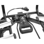 Platforma posiada pełne zabezpieczenie na kuli haka, zabezpiecza również każdy rower osobno gałką.