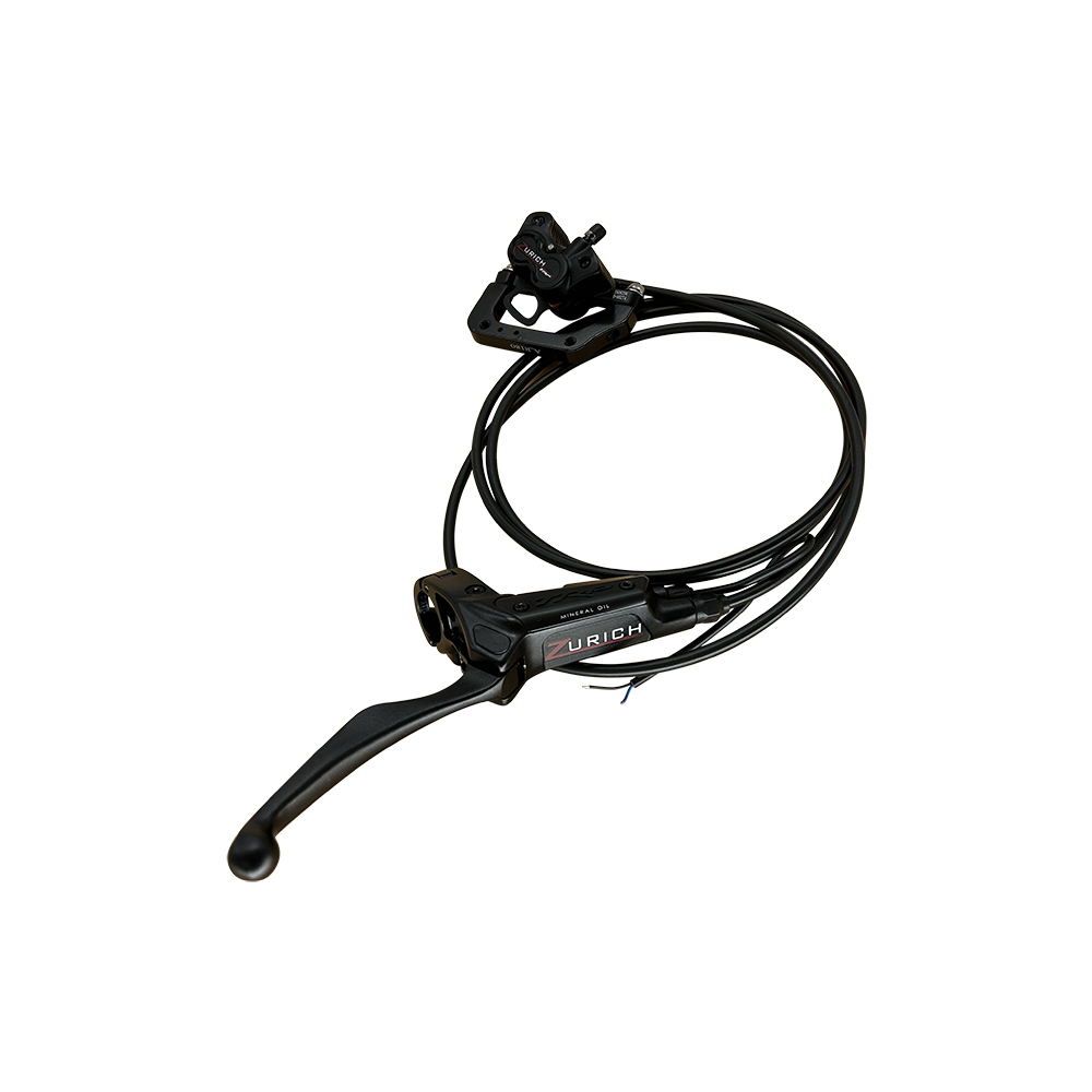 - Dobrej jakości hamulec hydrauliczny marki Tektro TRP /open system, dual piston/. Zestaw zawiera gotowy do montażu hamulec tylni
